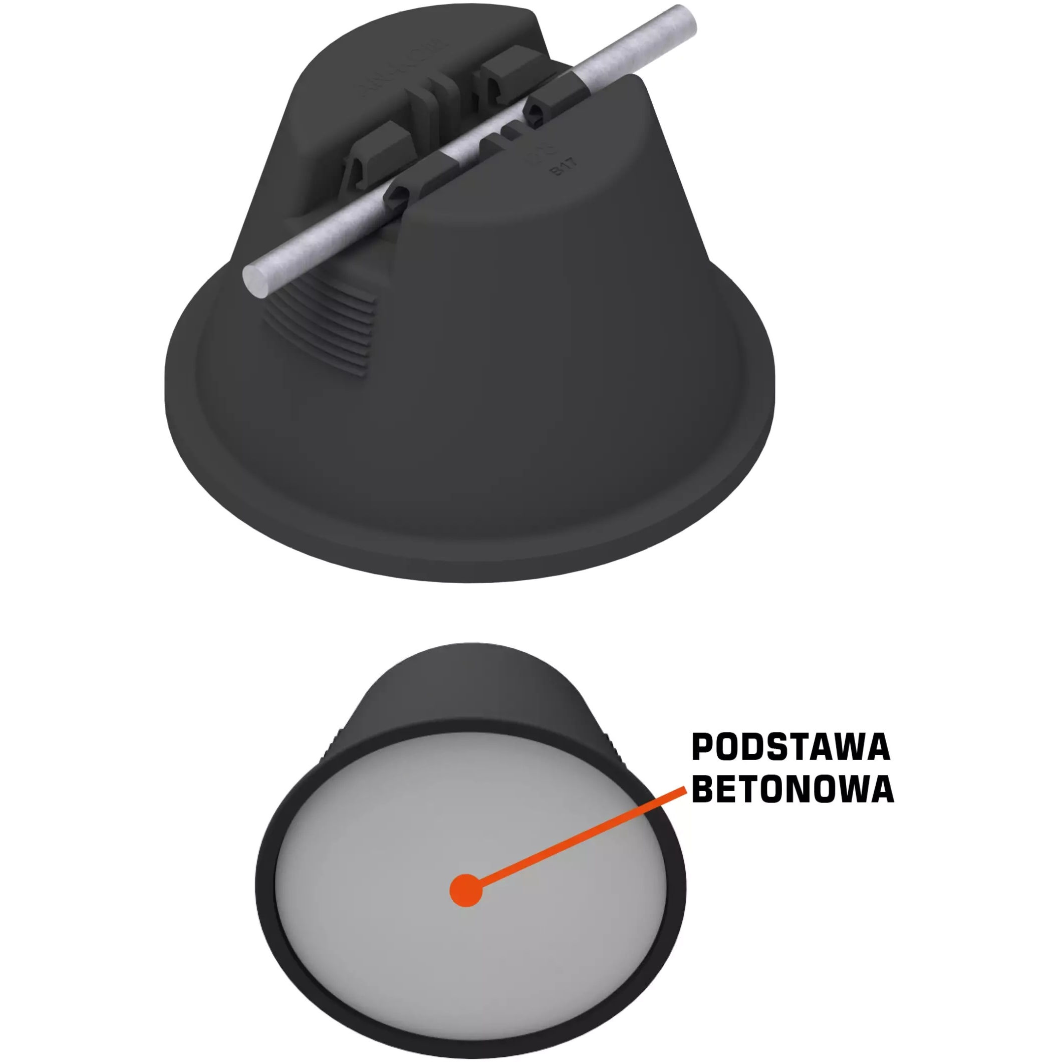 Uchwyt betonowy w tworzywie FI 8 B931504 marki An-Kom – trwałe i bezpieczne mocowanie w instalacjach odgromowych