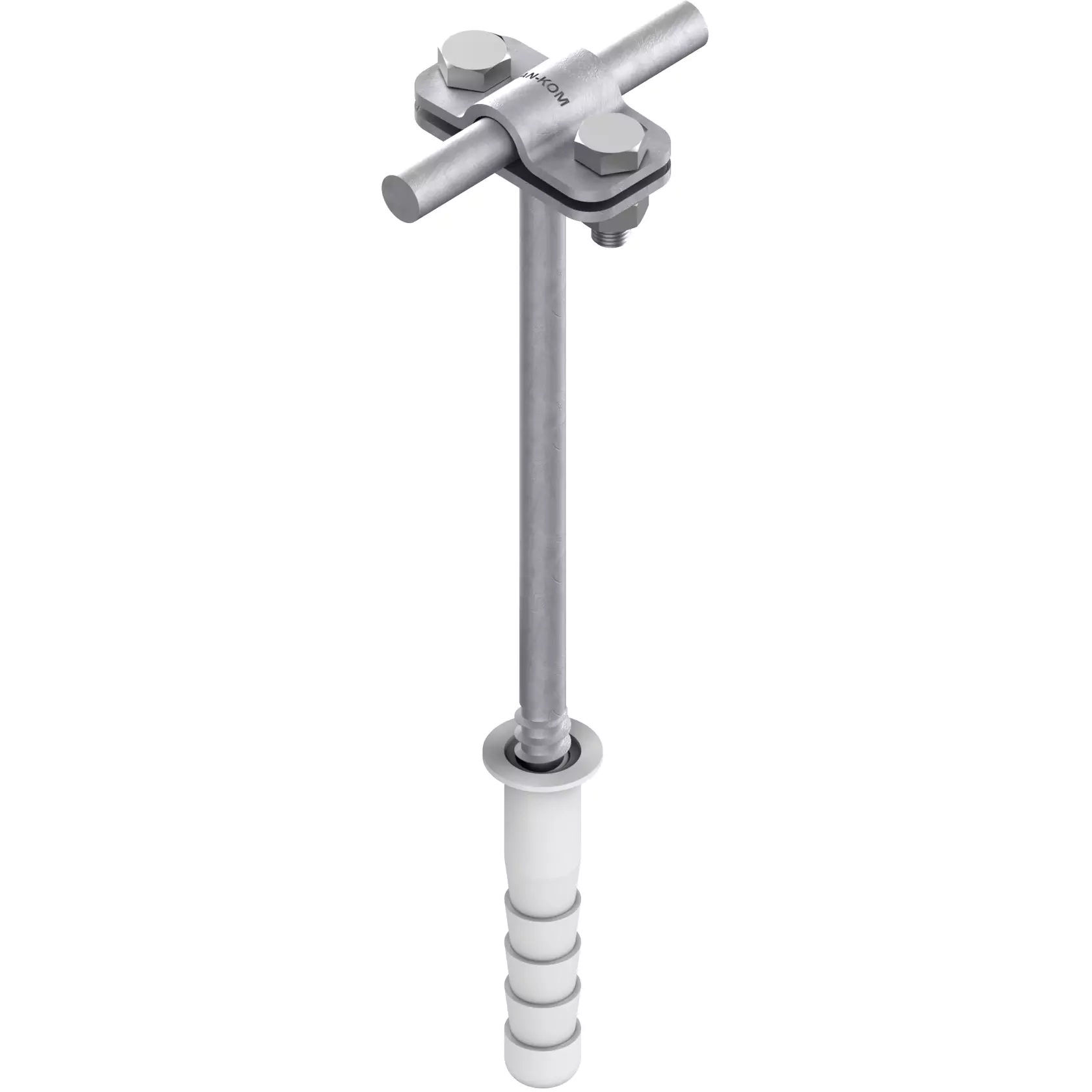 Uchwyt C192356 marki An-kom to profesjonalny element montażowy, stworzony z myślą o trwałym i stabilnym prowadzeniu drutu odgromowego. Jego konstrukcja oparta na stalowym trzpieniu o długości 250 mm i szerokości podstawy 25 mm zapewnia odpowiedni dystans od powierzchni oraz pewność mocowania nawet w wymagających warunkach.