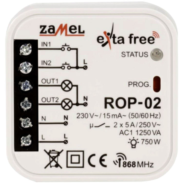 Dlaczego warto wybrać ten model? – Dwa niezależne kanały: sterowanie dwoma urządzeniami lub obwodami jednocześnie – Bezprzewodowa komunikacja: niezawodne działanie w systemie Exta Free – Dopuszkowy montaż: dyskretny montaż w standardowej puszce instalacyjnej – Prosta konfiguracja: szybkie parowanie z nadajnikami i łatwa integracja z systemem – Trwałość i niezawodność: solidna konstrukcja odporna na intensywne użytkowanie – Producent: Zamel – polski lider w dziedzinie automatyki domowej i przemysłowej