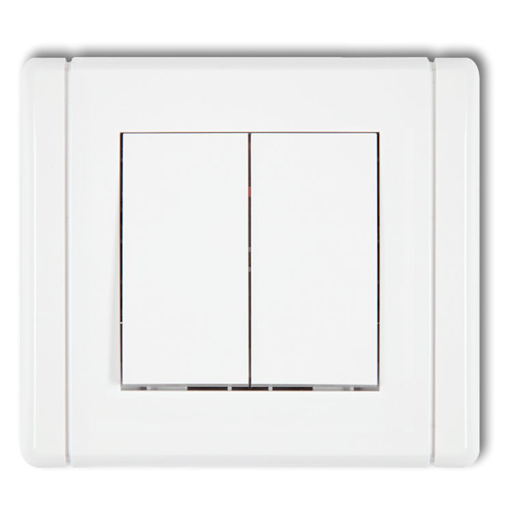 Łącznik jednobiegunowy ze schodowym (dwa klawisze bez piktogramów, wspólne zasilanie) w kolorze Białym to mechanizm łącznika, który łączy w sobie funkcję jednobiegunowego oraz schodowego, wykorzystując wspólne zasilanie. Umożliwia sterowanie jednym źródłem światła z dwóch różnych miejsc, co zwiększa wygodę użytkowania, na przykład na klatce schodowej lub w długim korytarzu. Rozwiązanie to zapewnia funkcjonalność i oszczędność miejsca, ponieważ jeden mechanizm spełnia dwie role.