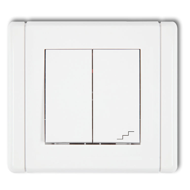 Łącznik jednobiegunowy ze schodowym (osobne zasilanie) w kolorze Białym to mechanizm łącznika, który łączy w sobie funkcję jednobiegunowego oraz schodowego, działających na osobnych zasilaniach. Umożliwia niezależne sterowanie dwoma obwodami oświetleniowymi z różnych punktów, co zwiększa elastyczność w aranżacji oświetlenia. Rozwiązanie to zapewnia wygodę użytkowania i funkcjonalność w pomieszczeniach o złożonej instalacji elektrycznej.