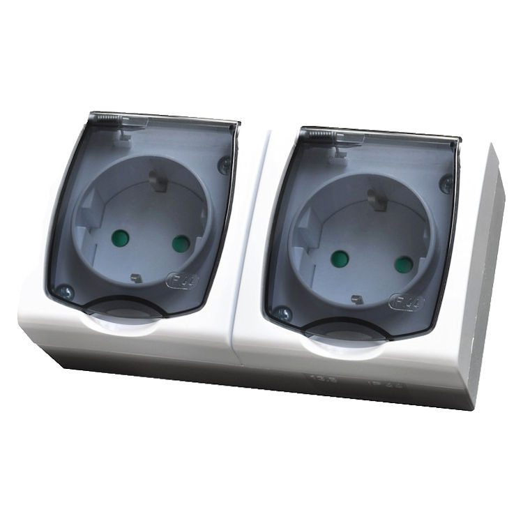 GNH-2NSP/00/d Gniazdo podwójne z uziemieniem schuko z przesłonami torów prądowych wieczko przezroczyste Biały