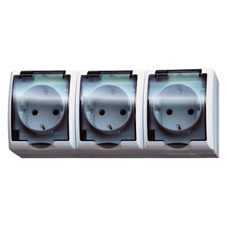 GNH-3HS/00/d Gniazdo potrójne z uziemieniem schuko wieczko przezroczyste Biały