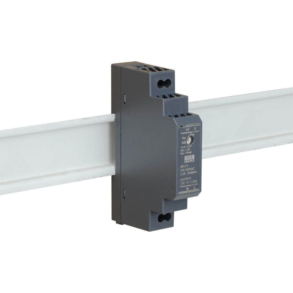 Zasilacz na szynę DIN 15W 1,25A 85–264V AC / 120–370V DC 12V marki Pulsar – kompaktowe i niezawodne źródło zasilania