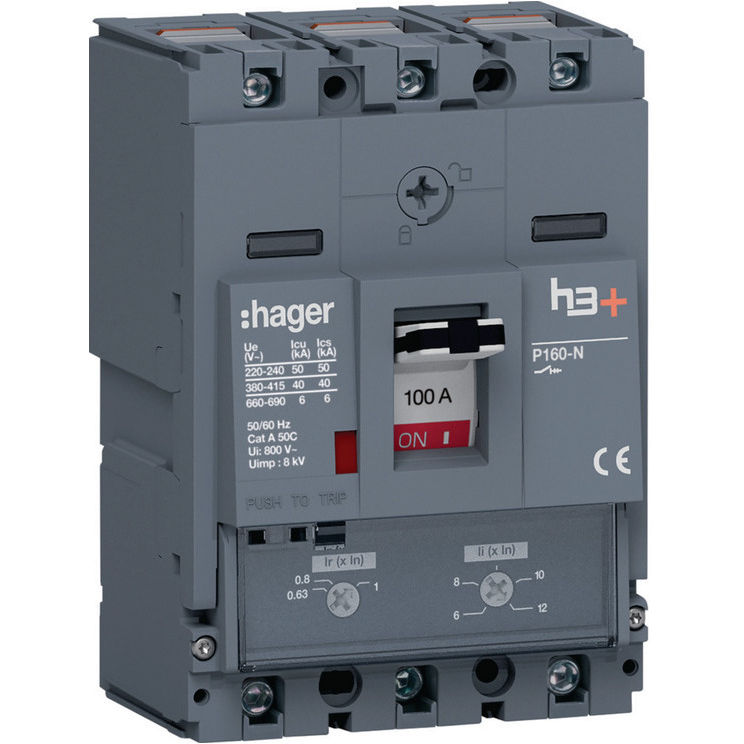 Wyłącznik mocy Hager h3+ P160 100A 3P 40kA TM MCCB HNS100DC – niezawodna ochrona instalacji trójfazowych