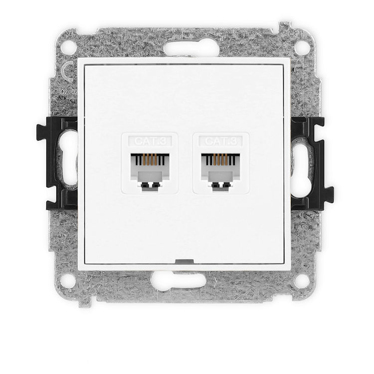 Gniazdo telefoniczne ma dwa wejścia RJ11, dzięki czemu umożliwia podłączenie dwóch urządzeń w jednym miejscu, na przykład telefonu i faksu. Obsługuje standardowe przewody telefoniczne i pozwala korzystać z instalacji stacjonarnej w wygodny sposób. Montaż jest beznarzędziowy, co ułatwia szybkie i proste podłączenie przewodów.
