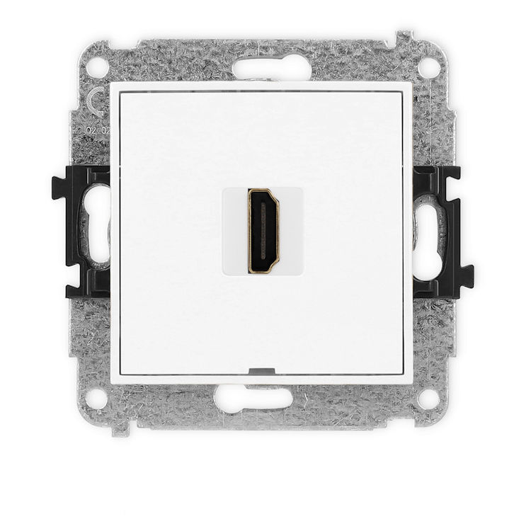 Mechanizm gniazda pojedynczego HDMI 2.1, 8K, bez pola opisowego w kolorze Białym to gniazdo umożliwia podłączenie urządzeń multimedialnych za pomocą przewodu HDMI. Służy do przesyłania obrazu i dźwięku w wysokiej jakości, obsługując standard 2.1 oraz rozdzielczość 8K. Dzięki niemu można wygodnie podłączyć telewizor, konsolę, dekoder czy odtwarzacz, zachowując czysty i stabilny sygnał.