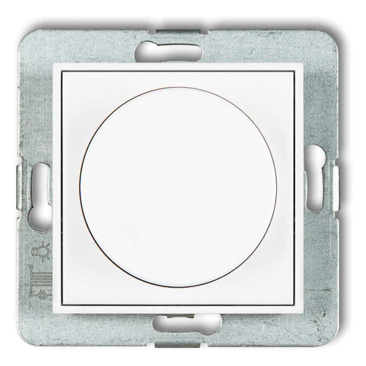 Mechanizm elektronicznego regulatora oświetlenia przyciskowo-obrotowego do lamp LED w kolorze Białym to elektroniczny regulator oświetlenia przyciskowo-obrotowy do lamp LED (ściemniacz) umożliwia regulację oświetlenia ściemnialnego ledowego, halogenowego zasilanego poprzez transformator elektroniczny oraz żarowego. Zastosowanie regulatora zwiększa komfort i codzienną oszczędność energii elektrycznej, której zużycie jest proporcjonalne do natężenia światła. Elektroniczny regulator oświetlenia przyciskowo-obrotowy do lamp LED jest urządzeniem inteligentnym, które można zaprogramować, ustawiając indywidualnie wg potrzeb minimalny poziom oświetlenia oraz tryb pracy.