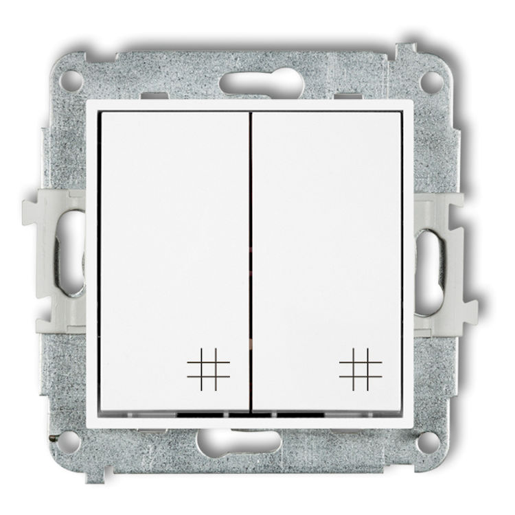 Mechanizm łącznika podwójnego krzyżowego w kolorze Białym to łącznik z dwoma klawiszami, który umożliwia sterowanie dwoma różnymi źródłami światła z trzech lub większej liczby miejsc. Montuje się go zazwyczaj pomiędzy parami łączników schodowych, aby dodać dodatkowe punkty sterowania dla każdego obwodu. Dzięki temu można wygodnie zapalać i gasić dwa niezależne oświetlenia z wielu stron korytarza, dużego salonu czy klatki schodowej.