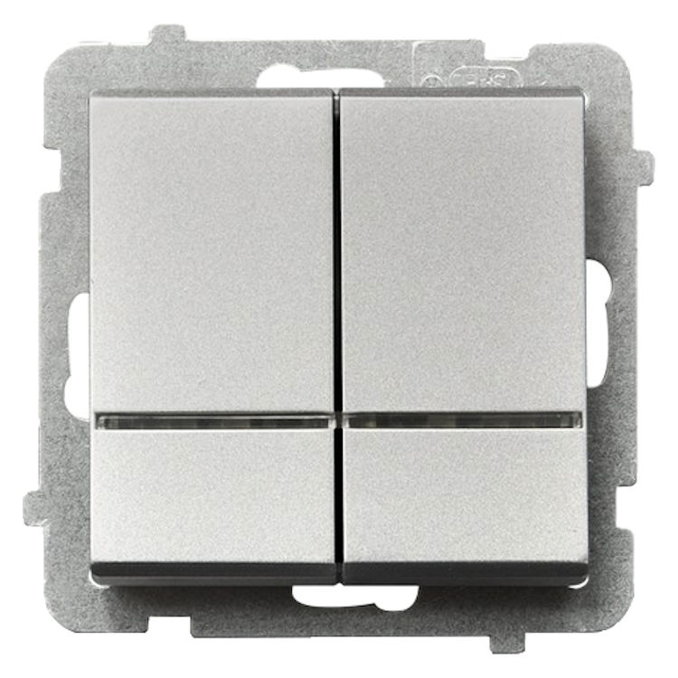 ŁP-2RS/m/38 Łącznik dwugrupowy świecznikowy z podświetleniem niebieskim Srebro Mat