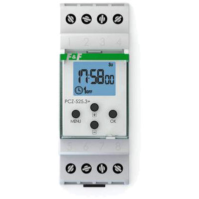 Zegar astronomiczny PCZ-525.3-PLUS marki F&F to nowoczesne urządzenie stworzone do automatycznego sterowania oświetleniem i innymi odbiornikami elektrycznymi w oparciu o rzeczywiste godziny wschodu i zachodu słońca. Wersja PLUS z funkcją przerwy nocnej umożliwia dodatkową optymalizację zużycia energii poprzez wyłączanie światła w wybranym przedziale czasu nocnego, bez utraty funkcjonalności systemu.