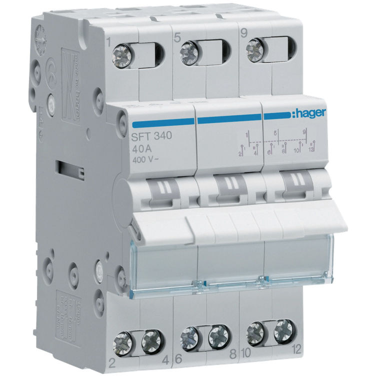 Przełącznik instalacyjny EATON SFT340 o układzie pracy /I-0-II/ z punktem wspólnym od góry to trójbiegunowe urządzenie umożliwiające ręczne przełączanie pomiędzy dwoma źródłami zasilania. Z prądem znamionowym 40A i napięciem 400V AC, idealnie sprawdza się w instalacjach trójfazowych, oferując bezpieczeństwo, funkcjonalność i kompaktowe wymiary do montażu...