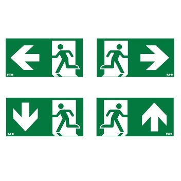 Komplet piktogramów Eaton SafeLite – 4 sztuki dla czytelnego oznakowania dróg ewakuacyjnych