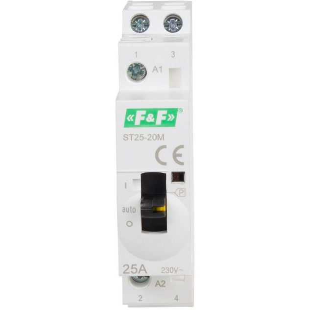 Stycznik modułowy F&F ST25-20-M z manipulatorem do sterowania ręcznego 25A 250V AC 2R – precyzyjne zarządzanie obwodami z funkcją ręcznego przełączania