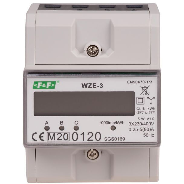 Licznik zużycia energii WZE-3 3-fazowy 80A 3×230/400V+N F&F – precyzyjny pomiar w instalacjach trójfazowych